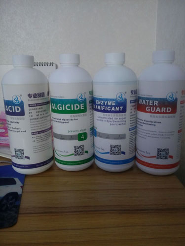 為了保證水質,建議使用泳潔游泳池水處理藥劑。