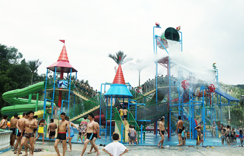 •   水寨以加勒比海盜為主題的大型互動(dòng)水上城堡,占地面積約1400平方米,高達(dá)14.5米,多項(xiàng)水上娛樂(lè)設(shè)施,兩個(gè)超級(jí)大翻桶。